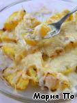 Затем засыпать щедро тeртым сыром - и в разогретую духовку. Как сыр расплавится - блюдо готово!