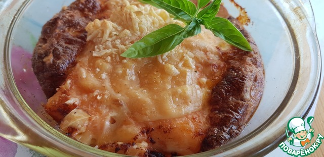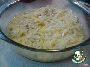 В форму для запекания выложить рыбу, а сверху яично-сырную смесь.
