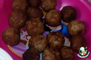Сначала сделать фрикадельки (я делаю фарш, как на котлеты) шариками диаметром 2 см, обжарить до готовности.