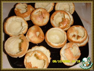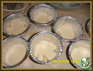 Желательно прикупить гофрированные бумажные формы (из них тарлетки получаются очень красивые, ровненькие), но так как у меня не было, а любопытсво разпирало меня, решила всё-таки по несколько штук сделать в алюминиевых формочках, и часть проложила просто калькой (готовые маленькие формочки).