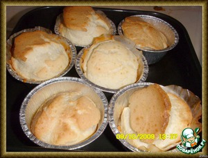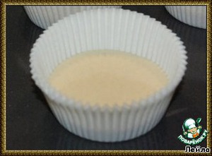 Духовка должна быть разогрета до 200*С. Противень разогреваем вместе с духовкой. Бумажные формочки, ничем не смазывая, заполняем наполовину