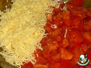 Мелко нарезаем помидоры, сыр натираем на мелкой терке. Добавляем майонез и перемешиваем.