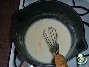 Быстренько варим из стакана молока и столовой ложки муки белый соус, распускаем в нем эээ... грамм 70 сливочного масла (плюхнул на глаз)