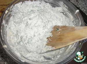 Готовим пасту - смешиваем майонез, укроп. Добавляем немного соли и черного молотого перца (по вкусу :-))