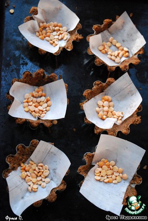 На дно тарталетки положить кусочек бумаги с горохом или фасолью.