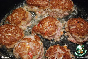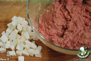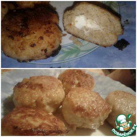 Из фарша скатать шарики, в каждый положить по 2-3 кубика сыра, сформировать тефтели. Жарить в разогретом масле до румяной корочки.