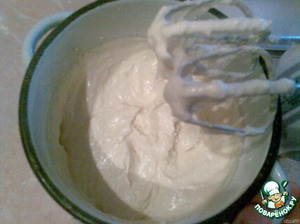 Для крема взбить сгущёнку, взбитые сливки и сахарную пудру.