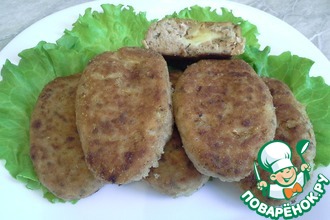 Рыбные котлеты с грибами и рисом "Алая заря"