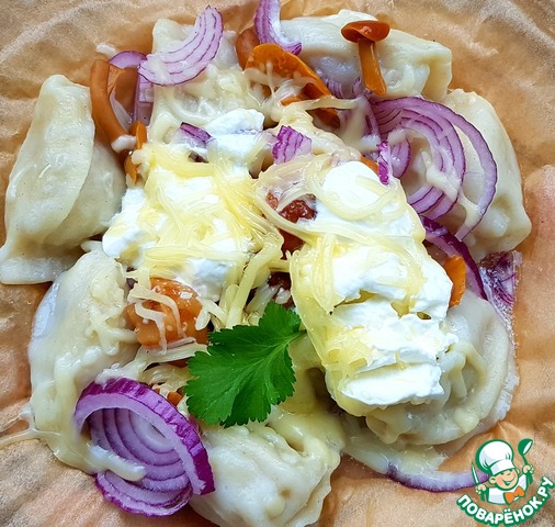 Рецепт «Пельмени, запеченные с грибами в соусе»: