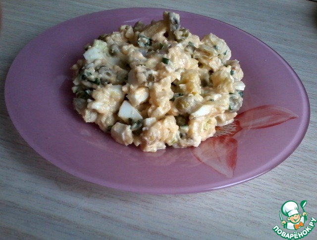 Очень простенький, незатейливый салатик, очень любим в моей семье. Готовится быстро, так как не требует никаких особых продуктов. Прекрасный вариант гарнира к жареной рыбке или кусочку хорошо прожаренного мяска!! Милости прошу!!