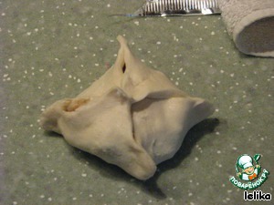 Тесто растягиваем руками, стараясь не очень истончать серединку - не то начинка пойдет гулять сама по себе. Кто-то раскатывает скалкой - это уж, кому как нравится.