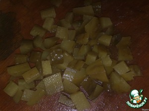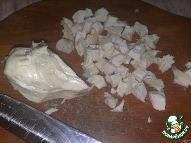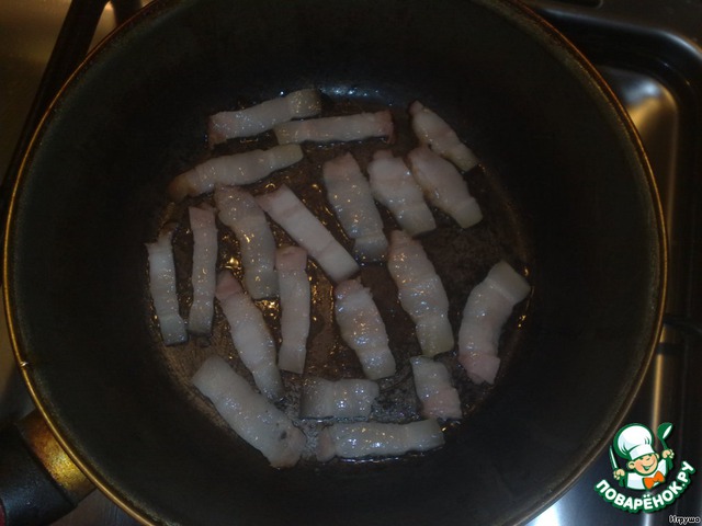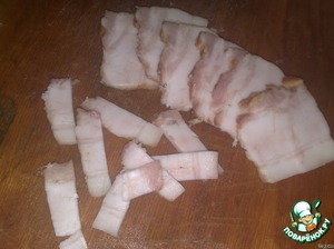 Грудинку нарезаем тонкими ломтиками, а ломтики полосочками.