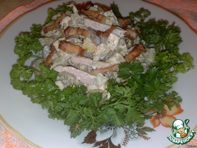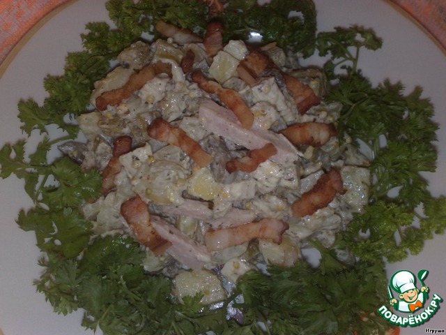 Вкусный и сытный салатик, из доступных продуктов, в деревенском стиле. Милости прошу отведать:)))