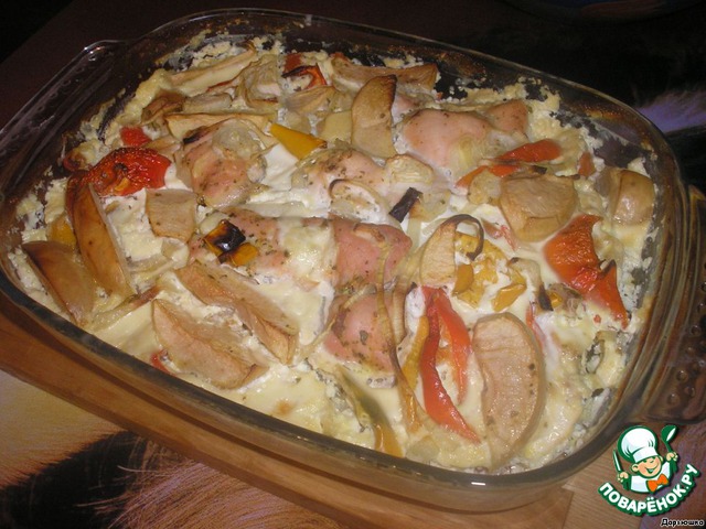 Не было сил (простудилась) готовить что то сложное. А любимого супруга удивить-то хочется :-) К тому же дома в больших количествах яблоки и болгарские перцы, которые требуют переработки. Вот что из этого вышло :-)