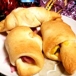а если не лень возиться,то в "трехугольник" ложу густой заварной крем, бекон и тёртый сыр. сверху рогалики перед выпечкой посыпаю тёртым сыром.