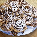 Выкладываем готовый хворост на блюдо, посыпаем сахарной пудрой, смешанной с ванилином. Кругляшки выглядят вот так.