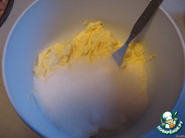 Режем масло на кусочки и подтапливаем в микроволновке, буквально секунд 15-20 (для того, чтобы оно легке размягчалось), можно просто подержать при комнатной температуре, если есть время.
