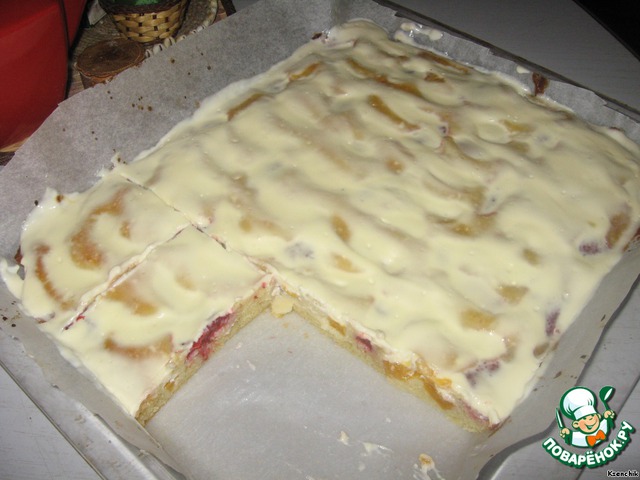 Теперь самое сложное! Ждем, когда наш пирог немного остынет, разрезаем на порции и...