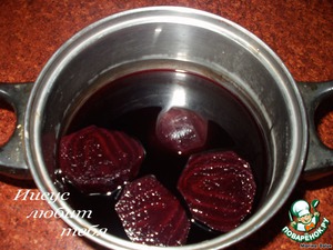 • Для начала отвариваем почищенную свеклу. Таким образом у нас получается свекольный бульон.