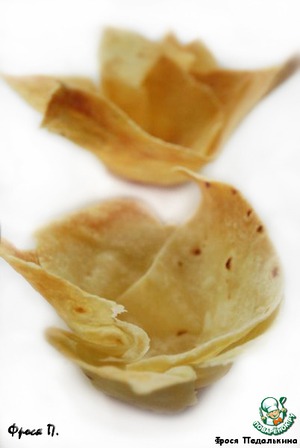 Выложить крест-накрест по 2 квадрата в форму для маффинов или кексов, прижать ко дну. Духовку разогреть до 180*С и подрумянивать корзиночки 10-15 минут.