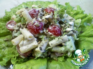 Заправить майонезом и посыпать сверху очищенными жареными семечками.