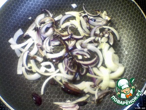 Лук почистить, нарезать, обжарить до золотистой цвета на растительном масле.