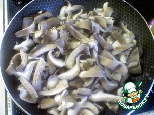 Добавить к обжаренному луку нарезанные грибы, нарезанный чеснок и обжарить до готовности.