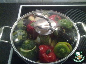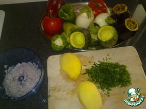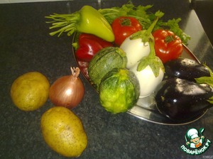 • Подготовить овощи (у меня - помидоры, красный и зелёный перцы, баклажаны, кабачки круглой формы)