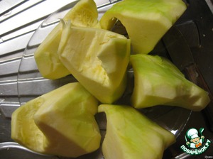 Счищаем кожуру, вынимаем сердцевину и режем маленькими кубиками для жарки.