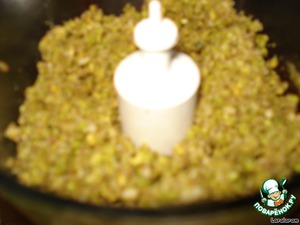 Фисташки смолоть вместе с сахаром, прибавив 1 ст.л. масла, смешать его с орехами. -