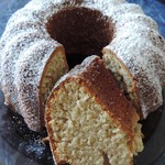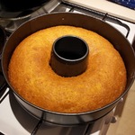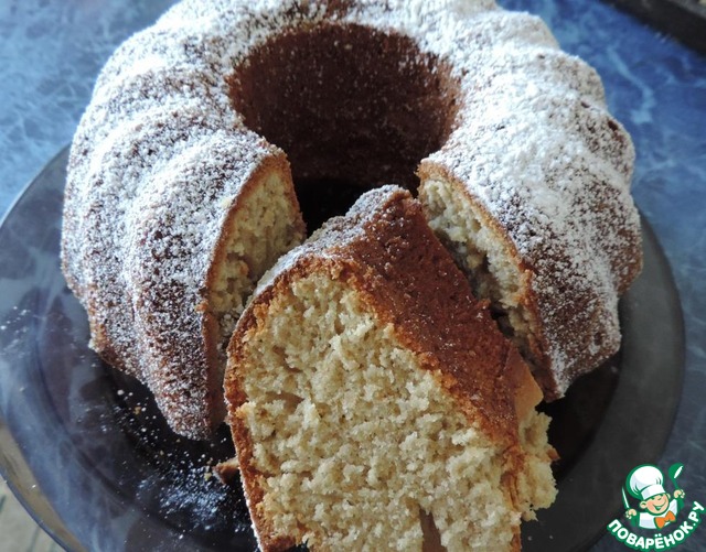 Ввести мучную смесь, перемешать и вылить в форму, смазанную маслом и присыпанную мукой. Автор пишет, что рецепт рассчитан на две формы для кекса размером 9Х5Х3 дюйма (23Х13Х8 см). Я пекла в круглой форме с дыркой, кекс так поднялся, что не просто стал выше бортов, а покрыл их шапкой. Так что подбирайте очень большую форму.