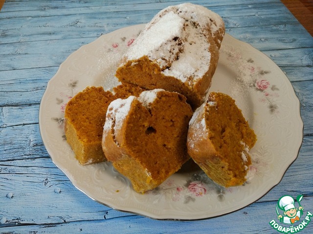 Этот рецепт с Гудкука (от Алины Спредли) сразу же меня заинтересовал сочетанием в тесте тыквы и ароматных специй, но не было тыквы. А недавно приятельница угостила тыквой с дачи, вот я и решила испробовать этот кекс. Получился нежный, сладкий кекс, вкус тыквы совершенно не чувствуется. И что самое интересное, этот кекс дней 5 точно остается свежим, как только что испеченным. Проверено! Просто мы его ели долго, так как получился он просто огромный! Спасибо автору. Ниже даю свои корректировки.