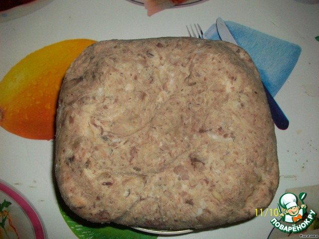 • После этого развязываем марлю и у нас получается "буханочка" вкусного прессованного мяса.
