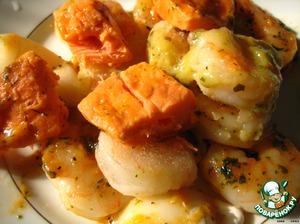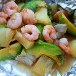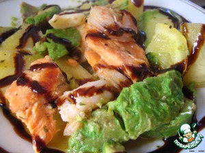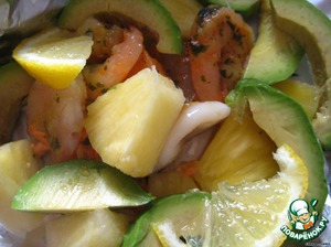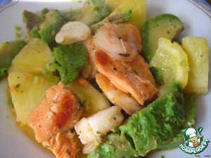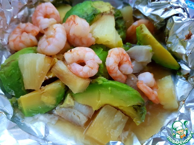 Рецепт «Запеченные креветки с семгой, ананасом и авокадо»: