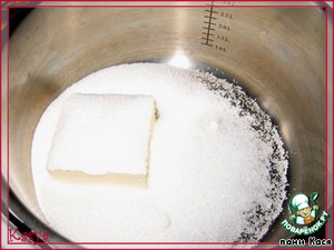 Растапливаем маргарин с сахаром (кусочек маргарина оставим на смазывание противня)