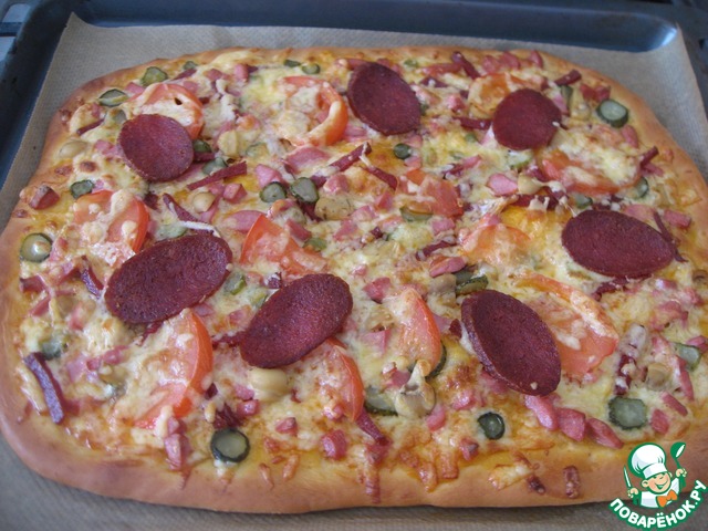 Замечательный рецепт для пиццы. Я его нашла в одной немецкой кулинарной книге. Пользуюсь уже много лет. Раздала уже рецепт всем знакомым, вот и вам предлагаю. Простое и вкусное тесто.
