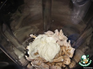 • Отвариваем куриное филе, мелко режем и кладем в блендер.
