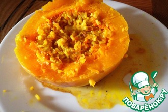 Наполняем шляпки начинкой и кладем в форму для запекания, предварительно обильно смазав ее сливочным маслом. Наливаем на дно немножко водички или бульона.