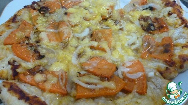 Рецепт «Пицца с запеченной тыквой и копченым салом»: