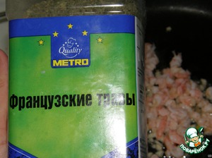 Добавляем "французские травы" для аромата, хорошенько перемешиваем и выключаем. Общее время жарки креветок - около 2-х мин.