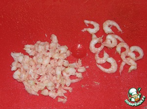 Коктейльные креветки (или обычные очищенные) измельчаем.