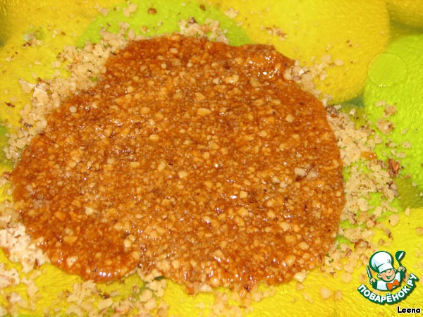 Орехи смолоть, но не в пыль, а просто мелко.