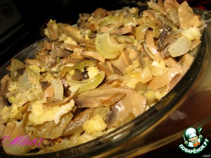 В обжаренные грибочки добавляем половину соуса Бешамель.