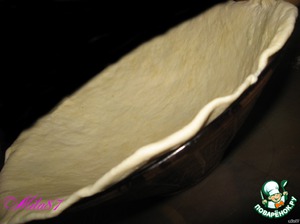 Сферическую форму выстилаем пленкой, раскатываем пласт теста. Выстилаем тестом форму. -