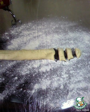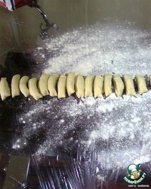 Итак, вернемся к тесту. Моя бабушка всегда раскатывала (и продолжает это делать) тесто очень тоненько, потом из него вырезает круги рюмочкой или режет этот пласт на квадраты.