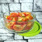 Вливаем эту гремучую смесь в наши помидорки и аккуратненько, но тщательно перемешиваем. Накрываем крышкой или можно затянуть пищевой пленкой и убираем в холодильник, чтобы все ингредиенты познакомились друг с другом и подружились. :-)