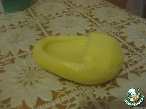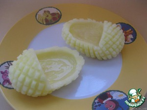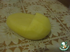 Аккуратно с помощью ножа и маленькой ложечки придать картошке форму лаптя.