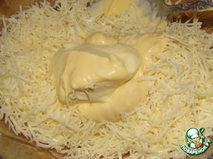 Тертый сыр смешиваем с майонезом (примерно 2 столовых ложки)