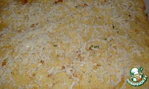 Выливаем тесто на противень, застеленный пергаментной бумагой, смазанной сливочным маслом и отправляем в разогретую до 180 градусов духовку на 15 минут