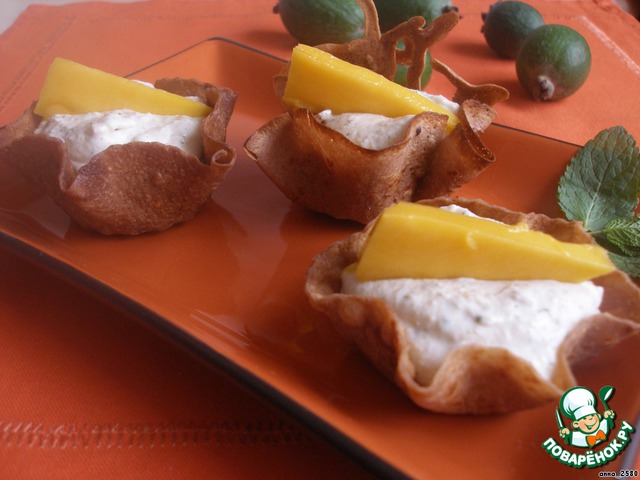 Разложить твороженный мусс по тарталеткам, украсить дольками манго и мятой. Приятного аппетита!